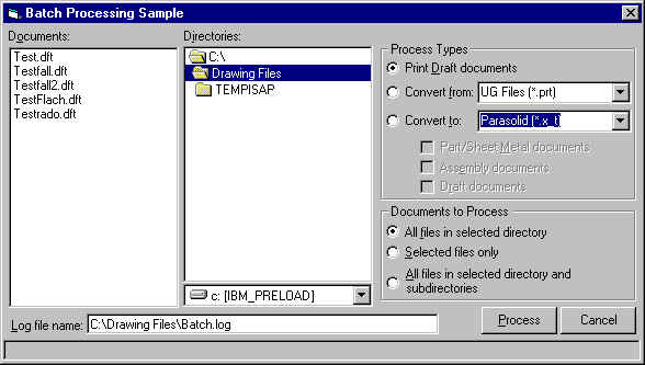 Auf der Solid Edge V6 CD befindet sich das Programm BATCH.EXE. Hiermit können Sie mehrere Solid Edge Draftdateien in einem Batch-Durchlauf plotten.