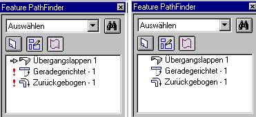 Schon bei der Erzeugung achten Sie bitte darauf, daß im Feature Path Finder kein Pfeil vor dem Übergangslappen erscheint.