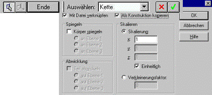 Den Abschluß bildet das Spiegeln der zuletzt erzeugten Ausprägung über der senkrecht stehenden Referenzebene.